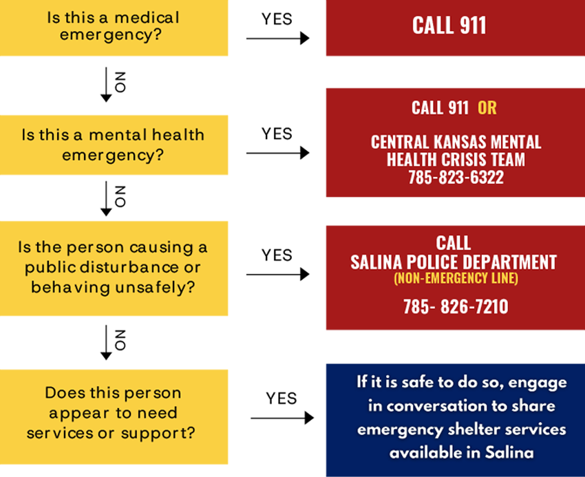 If someone appears to be homeless or in need of assistance, follow the guide below: